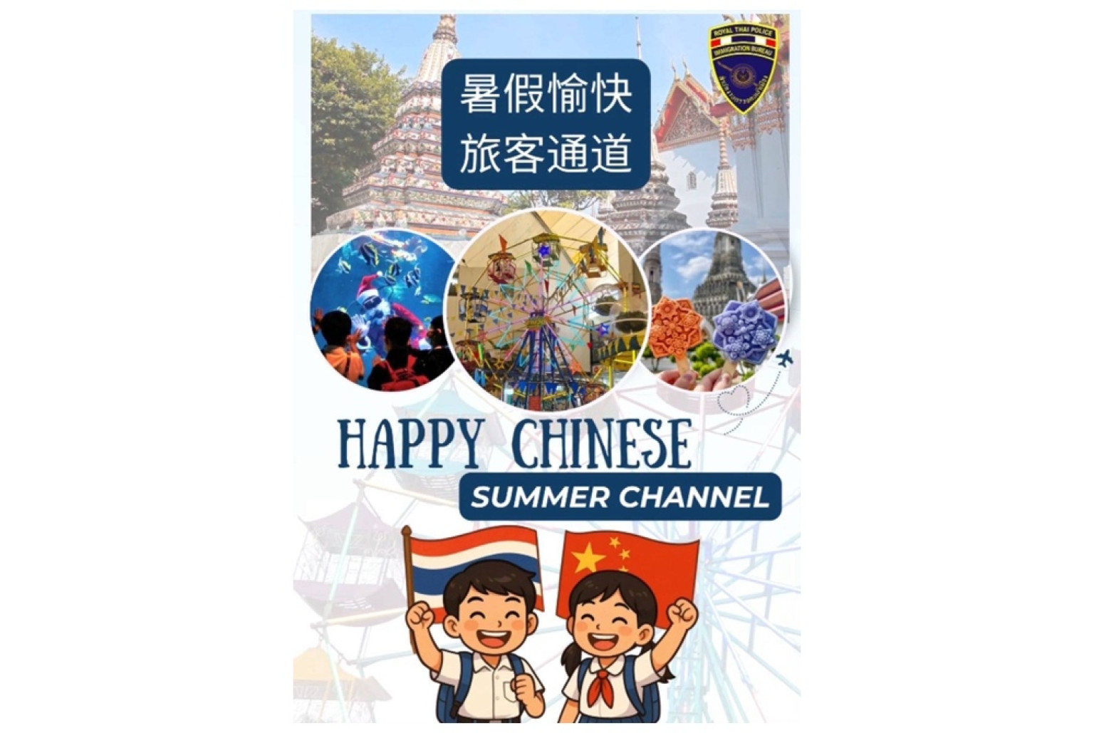 ดังนั้น ตม.2 ในฐานะประตูด่านหน้าของประเทศ จึงใช้โอกาสดังกล่าวทำกิจกรรม 暑假愉快通道 " shǔ jià yú kuài tú jìng " (ฉู่ เจี้ย หยู ไคว่ ชาแนล)" Happy Chinese Summer Channel" โดยจัดช่องทางพิเศษ ให้เด็กนักเรียนชาวจีน ที่เดินทางมาพร้อมครอบครัว เข้ารับการตรวจหนังสือเดินทางขาเข้าประเทศ ที่ด่าน ตม.สนามบิน สุวรรณภูมิ ดอนเมือง ภูเก็ต และเชียงใหม่