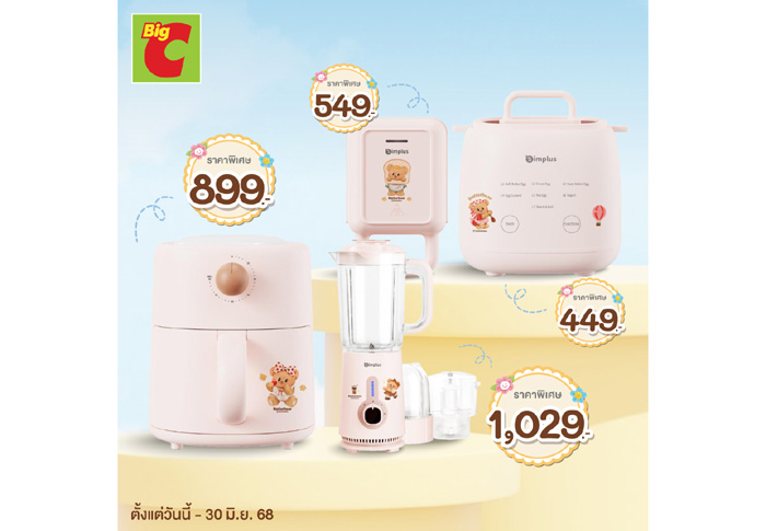 บิ๊กซี ร่วมกับ เครื่องใช้ไฟฟ้าแบรนด์ Simplus เจาะกลุ่มแฟนคลับน้องหมีเนย เปิดตัวคอลเลคชั่นสุดพิเศษ ลายหมีเนยสุดน่ารัก โทนพาสเทล เติมความสดใสให้ทุกมุมบ้าน จัดกิจกรรม “Simplus with your buttery friend” เอาใจบรรดามัมหมี – พ่อหมี ยอดซื้อสะสมสูงสุด 20 รางวัล รับสิทธิ์ถ่ายภาพคู่ ตั้งแต่ 29 พ.ค. 68 – 30 มิ.ย. 68