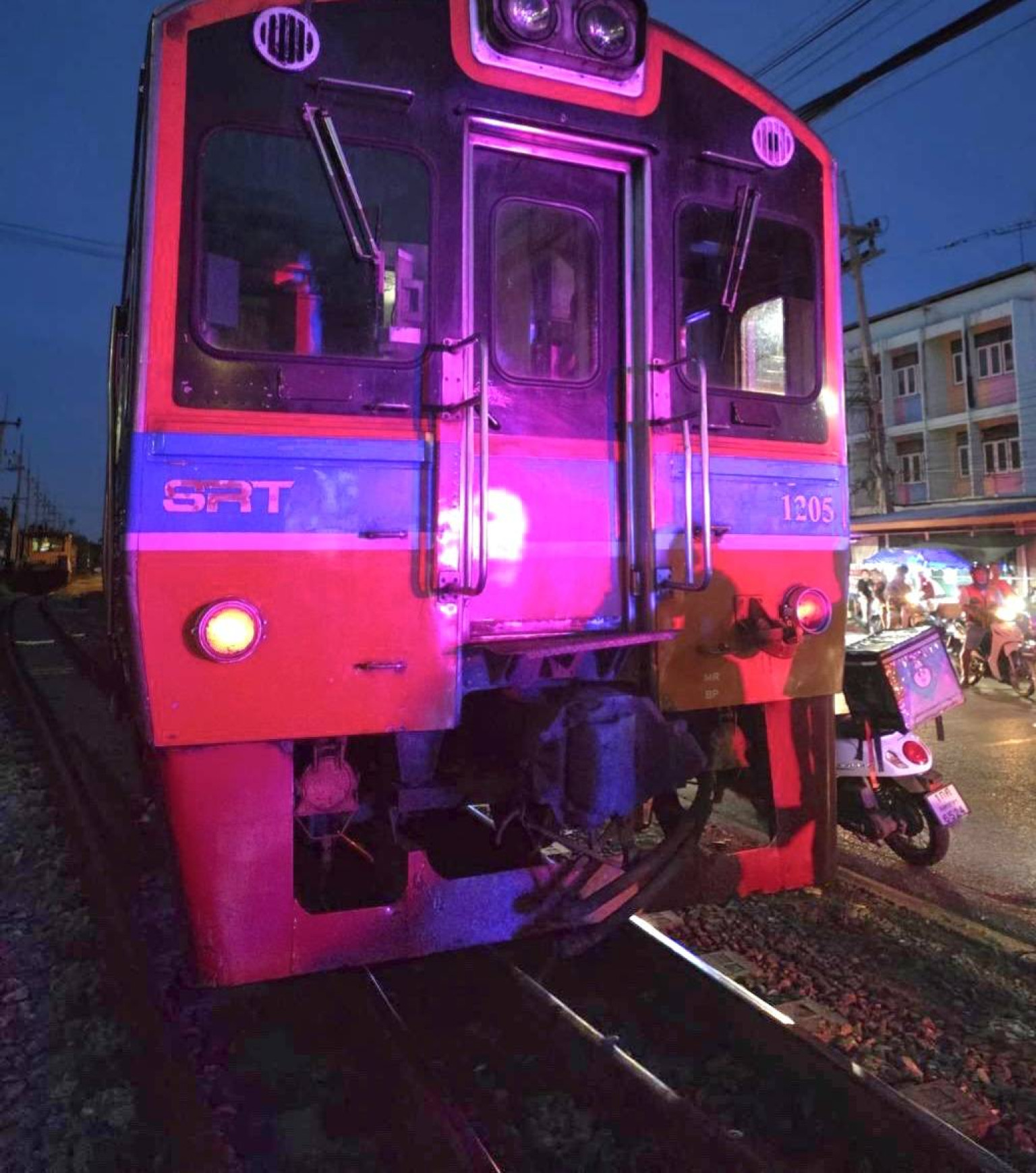 รถไฟสายมหาชัย-วงเวียนใหญ่ชนกับมอเตอร์ไซค์มีผู้บาดเจ็บสาหัส