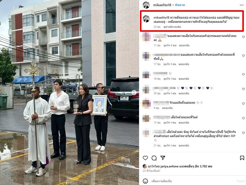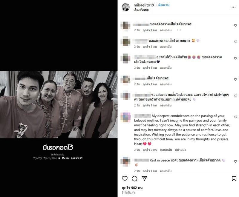 “Her goodness, her caring, and her wisdom live on -- like a legacy of love that will always be with you,” โดยมีคอมเมนต์เข้ามาร่วมแสดงความเสียใจด้วยอย่างต่อเนื่อง