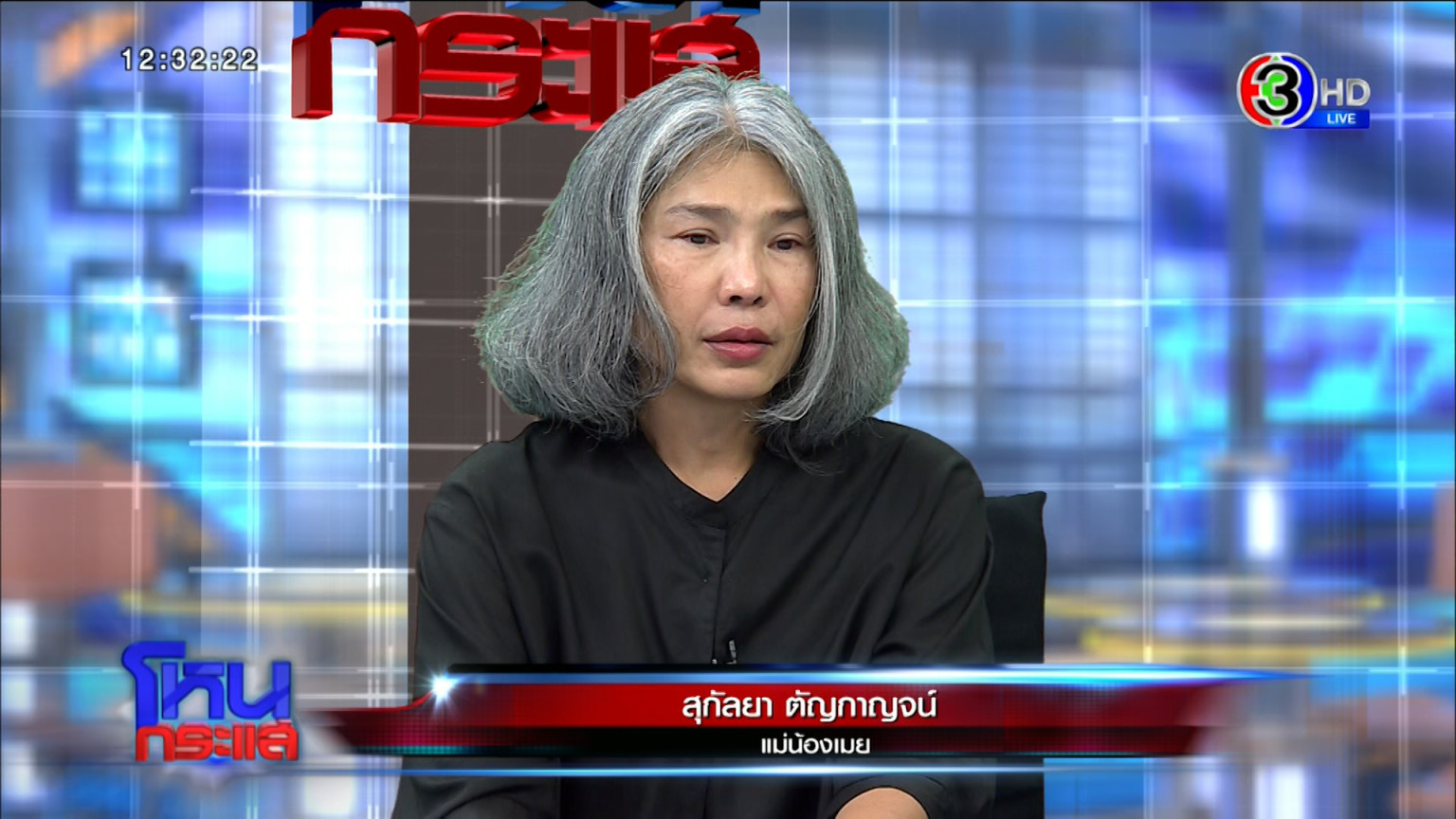 รายการ โหนกระแส วันที่ 23 ก.ค. ดำเนินรายการโดย“หนุ่ม กรรชัย กำเนิดพลอย” ผลิตในนามบริษัท ดีคืนดีวัน จำกัด ออกอากาศทุกวันจันทร์-ศุกร์ เวลา 12.35 น. ทางช่อง 3 กดหมายเลข 33 สัมภาษณ์ พ่อพิเชษฐ์ - แม่แหม่ม พ่อกับแม่น้องเมย , รศ.นพ.วีระศักดิ์ จรัสชัยศรี แพทย์ผู้เชี่ยวชาญด้านนิติเวชศาสตร์ มศว., ทนายแก้ว ดร.มนต์ชัย จงไกรรัตนกุล รองประธานคณะกรรมการเผยแพร่กฎหมาย สภาทนายความ