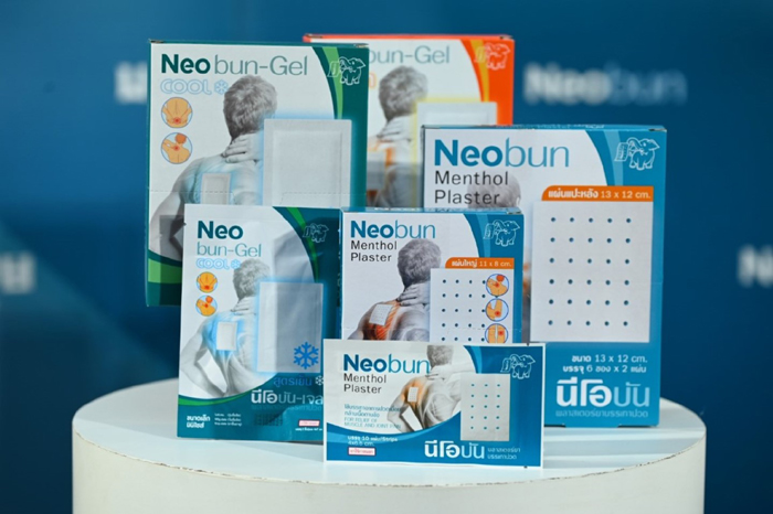 ล่าสุด บริษัทฯ นำเสนอนวัตกรรมใหม่ Muay Patch แผ่นเจลประคบเย็นตรามวย ที่ได้รับการพัฒนาขึ้นด้วยเทคโนโลยี Hydrogel ผสานพลังจากน้ำมันเปปเปอร์มินต์และเมนทอล เหมาะสำหรับนักกีฬาและผู้ที่ชื่นชอบการออกกำลังกาย ใช้ประคบเพื่อทำให้เย็น หรือบรรเทากล้ามเนื้อเมื่อยล้าในผู้ที่ต้องการความเย็นสบาย และสดชื่นสำหรับผู้ที่ออกกำลังกาย หรือเล่นกีฬา และยังต่อยอดความเชี่ยวชาญด้านการบรรเทาอาการปวดด้วยการเปิดตัว Neobun พลาสเตอร์ยาบรรเทากล้ามเนื้อ ที่ออกแบบมาเพื่อการใช้งานอย่างตรงจุด ด้วยตัวเลือกขนาดที่หลากหลาย ไม่ว่าจะเป็น Neobun Jumbo สำหรับคอ บ่า ไหล่ และ Neobun Back Pain สำหรับกลางหลังและหลังล่าง โดยผสานตัวยาสำคัญอย่าง Methylsalicylate, Menthol, Capsaicin และ Camphor เพื่อการบรรเทาอาการปวด พร้อมมีกลิ่นอ่อนๆ เพื่อความรู้สึกผ่อนคลายระหว่างการใช้งาน เหมาะสำหรับไลฟ์สไตล์ปัจจุบันของคนทุกช่วงวัย