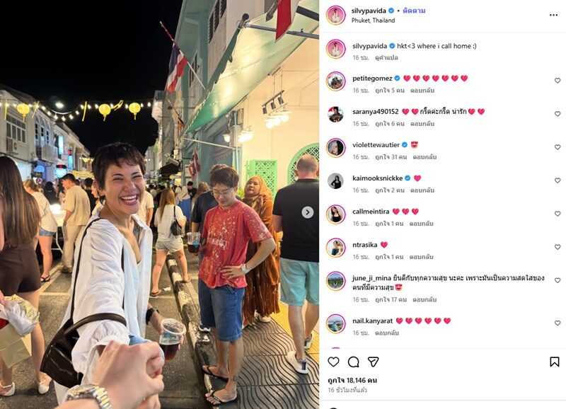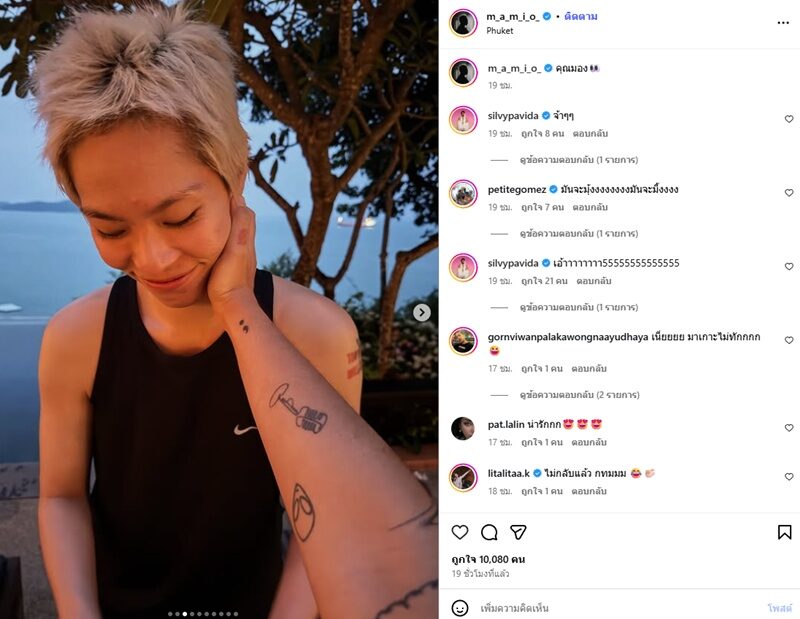 ทั้งนี้ส่องทริปภูเก็ตหวานของ ซิลวี่ ซึ่ง มะเหมี่ยว หรือ พัด ก็เข้ามาคอมเมนต์เป็นรอยยิ้มด้วย พร้อมทั้งคอมเมนต์จากเพื่อนในวงการบันเทิงที่ส่งหัวใจมารัวๆ ขณะที่ มะเหมี่ยว ก็โพสต์ทริปภูเก็ต ซิลวี่ ก็เข้ามาคอมเมนต์ พร้อมทั้งมีคอมเมนต์แซวความมุ้งมิ้งความหวานทริปนี้ด้วย