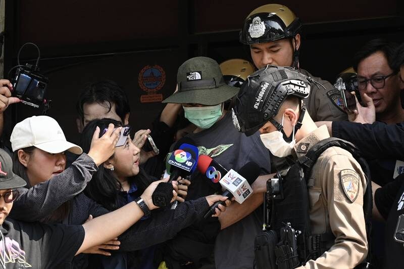 วันที่ 27 มีนาคม 2569 ที่ สน.ทุ่งสองห้อง ก่อนที่เจ้าหน้าที่ตำรวจจะนำตัวนายต้อม ชาวลาว ผู้ต้องหาในคดีฆ่าหั่นศพ น.ส.แรม แฟนสาวชาวลาวด้วยกัน ส่งฝากขังผัดแรกที่ศาลอาญา