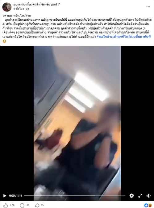 ต่อมาชายรายนี้ได้นำรูปลูกค้าสาว ไปตัดต่อด้วย AI สร้างเป็นรูปถ่ายคู่กันขึ้นมาหลายรูปภาพ แล้วนำไปโพสต์ลงในเฟซบุ๊กส่วนตัว ทำให้คนอื่นเข้าใจผิดคิดว่าเป็นแฟนกันจริงๆ จากนั้นชายรายนี้ยังได้ตามมาคุกคาม ลูกค้าสาวรายนี้ต่อในเฟซบุ๊คส่วนตัวลูกค้า ทักมาหาในเฟซบุ๊กตลอด 3 เดือนติดๆ อยากจะขอเป็นแฟนด้วย