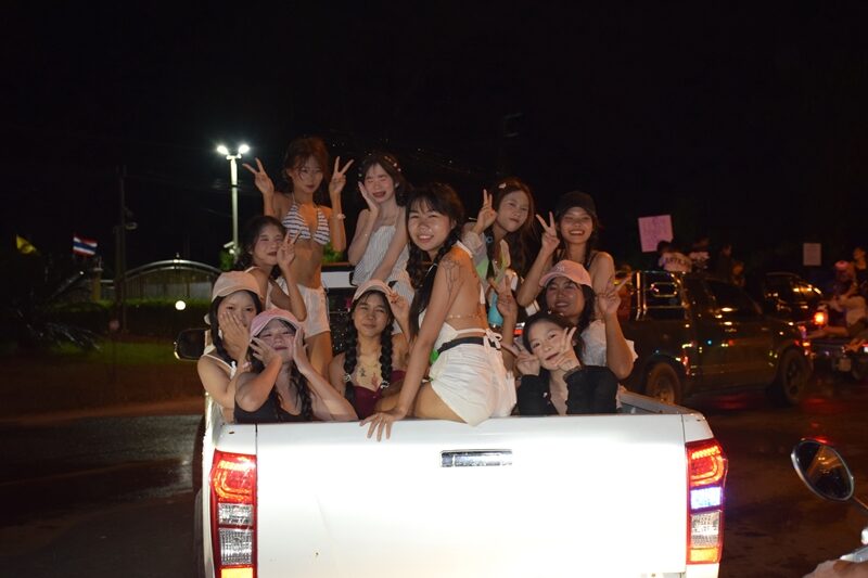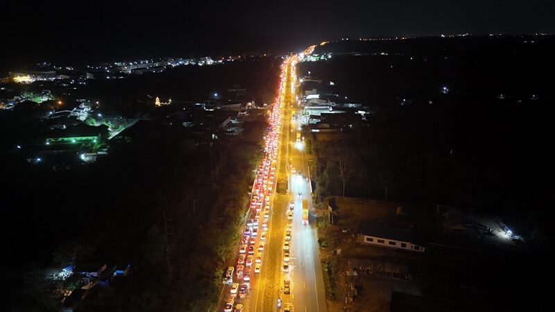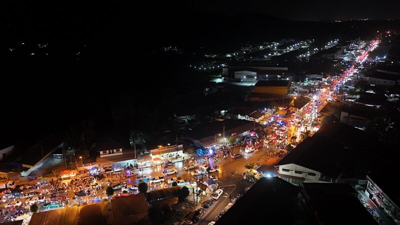 ต่อมาเมื่อเวลาประมาณ 22.00 น. ซึ่งถือเป็นช่วงเวลาที่คึกคักที่สุด พบว่าปีนี้มีปริมาณนักท่องเที่ยวหลั่งไหลเข้ามามากกว่าทุกปี จากภาพมุมสูงจะเห็นคลื่นมนุษย์และรถยนต์-รถจักรยานยนต์ เบียดเสียดเต็มพื้นที่ถนนสายนอกหน้าเทศบาล จนการจราจรกลายเป็นอัมพาต