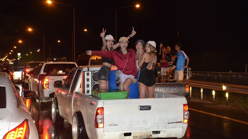 ปิดฉากวันไหลเมืองจันท์ คลื่นคนขับหมื่น แห่มาเล่นสงกรานต์คึกคัก ทะลักเบียดลงถนนสายหลักสระแก้ว-จันทบุรี จนการจราจรอัมพาต