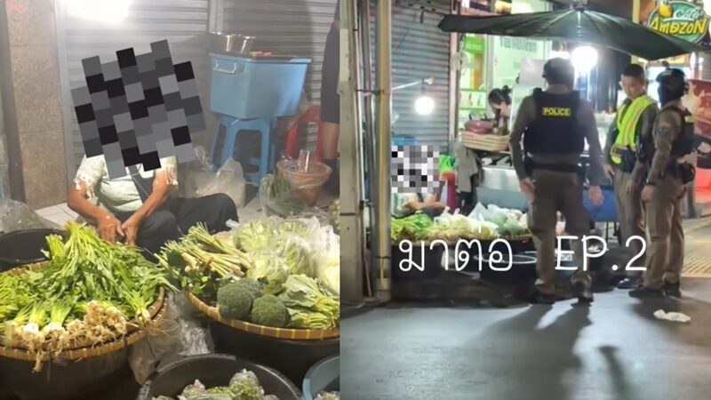 จากนั้นคุณยายได้หยิบผักบุ้งที่มีน้ำสะบัดใส่ตนจนเปียก ท่ามกลางผู้คนจำนวนมากในช่วงเวลาที่คนสัญจรเยอะมาก ทำให้ตนรู้สึกอับอาย จึงตัดสินใจโทรแจ้งเจ้าหน้าที่ตำรวจสายด่วน 191 เพื่อให้เข้ามาระงับเหตุ