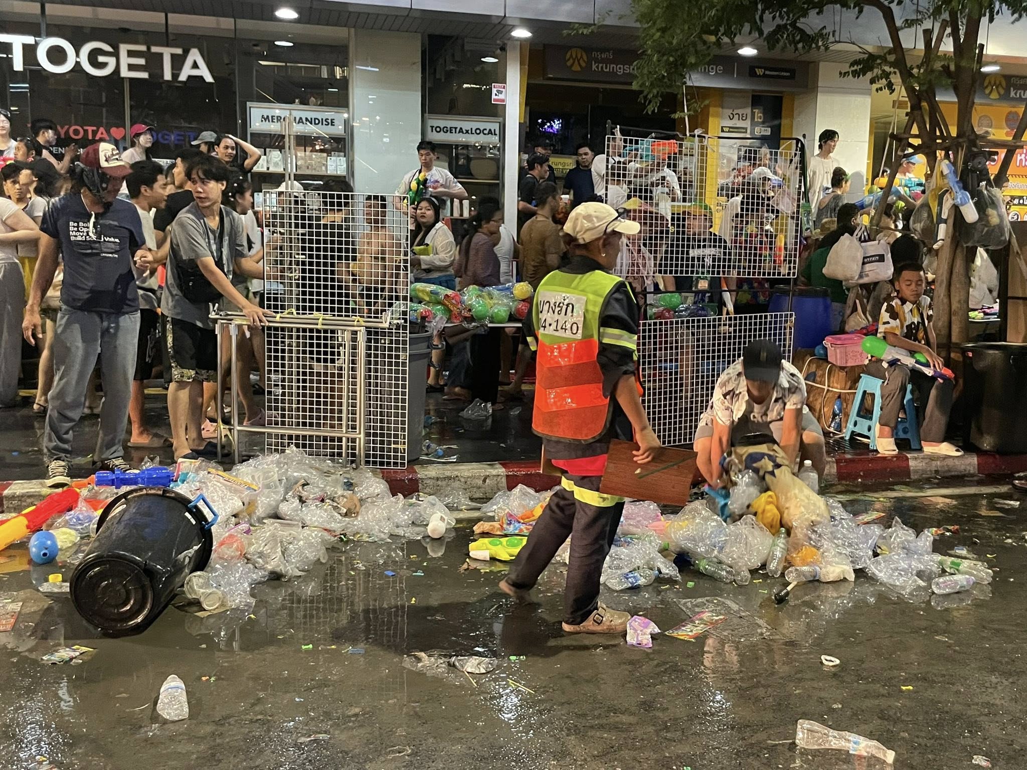 3. ปริมาณขยะจากพื้นที่จัดงาน สำหรับปริมาณขยะสะสมในพื้นที่จัดงานสำคัญ (11 – 15 เม.ย. 69) มีจำนวนรวมทั้งสิ้น 336 ตัน เพิ่มขึ้นเมื่อเทียบกับยอดรวมปี 2568 ที่มียอดรวม 250.5 ตัน โดยพื้นที่ที่มีปริมาณขยะสูงสุด ได้แก่ ถนนข้าวสาร 102.46 ตัน ถนนสีลม 86.17 ตัน และไอคอนสยาม 58.70 ตัน ซึ่งขยะส่วนใหญ่ประมาณ 81.52% เป็นขยะทั่วไป มีขยะเศษอาหารประมาณ 14.1% และมีขยะรีไซเคิลประมาณ 4.38%