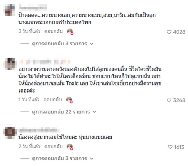 แต่ไม่วายที่จะต้องมาเจอกับบางคอมเมนต์ดราม่าที่ใช้คำค่อนข้างรุนแรง บอกไม่เรียบร้อยเหมือนคุณแม่ ภาพลูกสาวนางเอกต้องเรียบร้อย บางคำแรงเกินไปอีก อาทิ ไม่มีใครเตือนน้องเลยเหรอ , น้องไม่เรียบร้อยเหมือนคุณแม่เลย , ภาพลูกสาวนางเอกต้องเรียบร้อยค่ะ , แลดูไม่สุภาพเลยคุณแม่เป็นคนสุภาพมาก เป็นต้น
