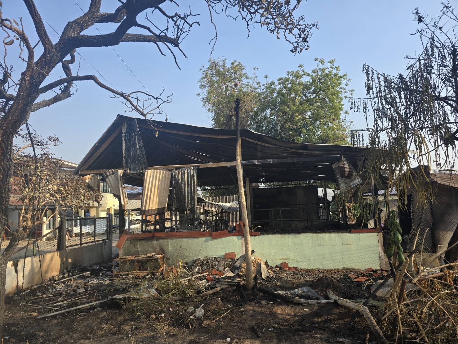สุดสลด ไฟไหม้ร้านค้า วอดทั้งหลัง ตรวจพบศพ 3 พ่อแม่ลูก นอนกอดกันกลม