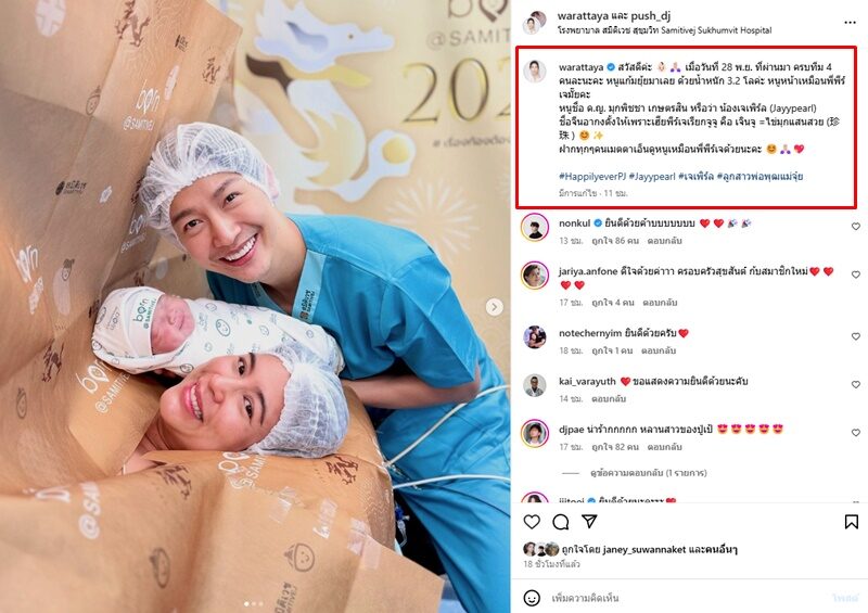 เป็นคุณแม่คุณพ่อลูกสองแล้ว จุ๋ย วรัทยา พร้อมด้วย ดีเจพุฒ พุฒิชัย สองสามีภรรยาเปิดภาพแรกลูกสาว น้องเจเพิร์ล สุดน่าเอ็นดู พร้อมข้อความว่า