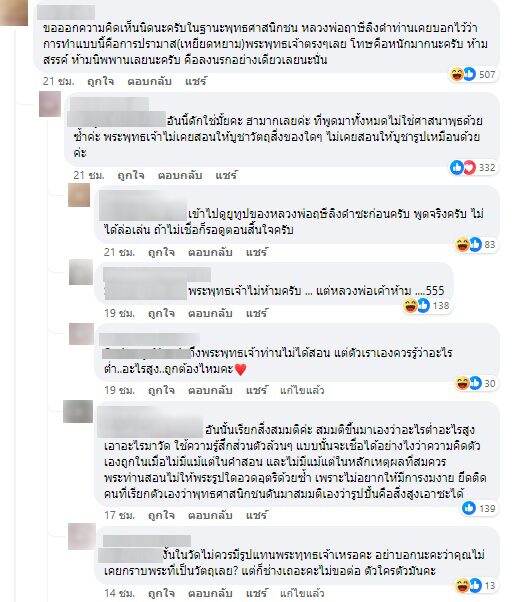 "ขอออกความเห็นนิดนึงนะครับ ในฐานะพุทธศาสนิกชน หลวงพ่อฤาษีลิงคำ ท่านเคยบอกไว้ว่า การทำแบบนี้คือการปรามาส (เหยียดหยาม) พระพุทธเจ้าตรง ๆ เลย"