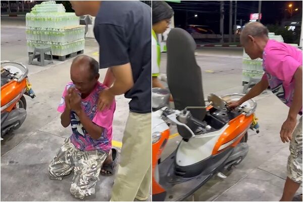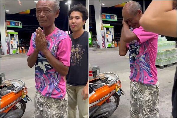 ก้มกราบทั้งน้ำตา! ลุงซึ้งใจ คู่รักให้เงินเติมน้ำมัน ขี่จยย.ตามหาลูก 2 วัน จำทางไม่ได้
