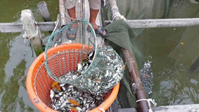 จากนั้นก็ทดลองปล่อยน้ำมีปลาหมอคางดำอยู่เต็ม แล้วปล่อยปลากะพง 7 - 8 นิ้วลงไป อีก 1,000 ตัว ช่วงแรกดีหน่อยเหมือนกับปลาหมอคางดำลดจำนวนลง แต่หลังจากนั้น 5 – 6 เดือน ปลาหมอคางดำเต็มไปหมดมันออกลูกเยอะ ก็ขึ้นปลาหมอคางดำได้ 5 ตัน ปลากะพงอยู่ครบ