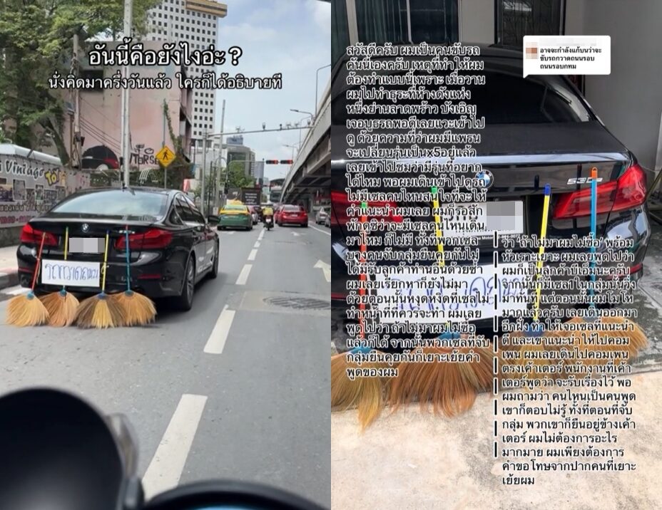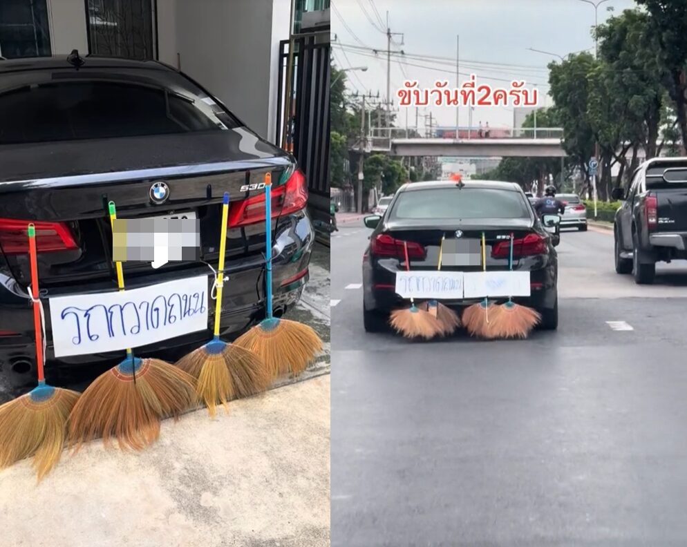 คลิปวิดีโอของผู้ใช้ติ๊กต็อกรายหนึ่งได้กลายเป็นไวรัลไปทั่วโซเชียล เมื่อเจ้าตัวโพสต์คลิปวิดีโอขณะอยู่บนท้องถนน แล้วบังเอิญเจอรถยนต์สุดหรู BMW ที่ถูกติดไม้กวาดไว้ด้านหลังรถหลายๆคันพร้อมเขียนว่า "รถกวาดถนน"