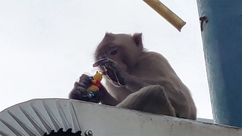ลิงลพบุรี ก่อเรื่องอีก โดดซ้อนจยย. แย่งทุเรียนไปกินเย้ย หนุ่มรถล้มเจ็บแถมโดนกัด