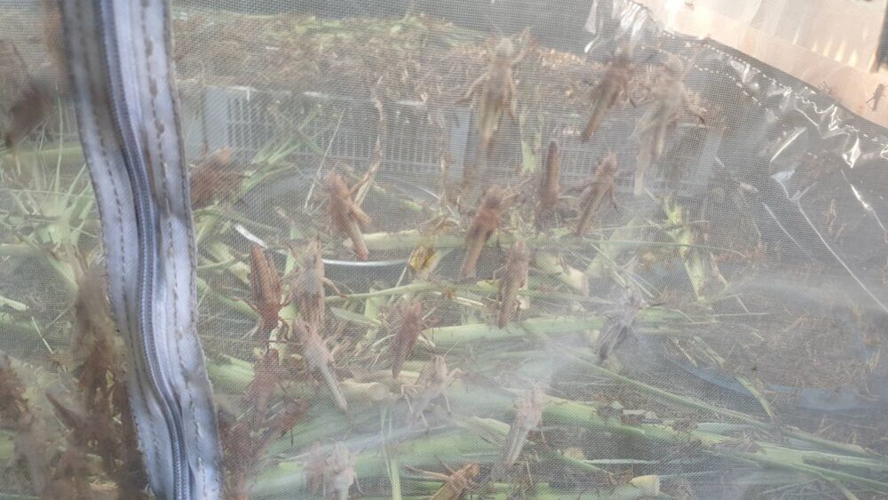 ซึ่งขั้นตอนของการเลี้ยงตั๊กแตน เริ่มจากการเตรียมสถานที่เลี้ยงต้องเป็นระบบปิด ใช้มุ้งตาข่ายเขียวขนาดเล็กมาเย็บต่อกัน ให้เป็นโรงเรือนเพาะเลี้ยงรูปทรงสี่เหลี่ยม กว้าง 3 เมตร ยาว 4 เมตร