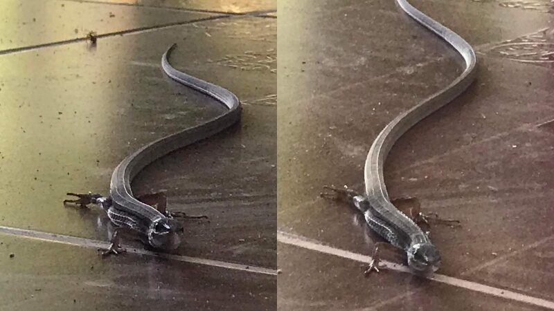 หนุ่มสุดงง เจอสัตว์ประหลาด หน้าตาราวกับจิ้งเหลน มี 4 ขาแต่หางยาวคล้ายงู ไล่ก็ไม่ไปแถมสู้คน ถามนี่ตัวอะไร