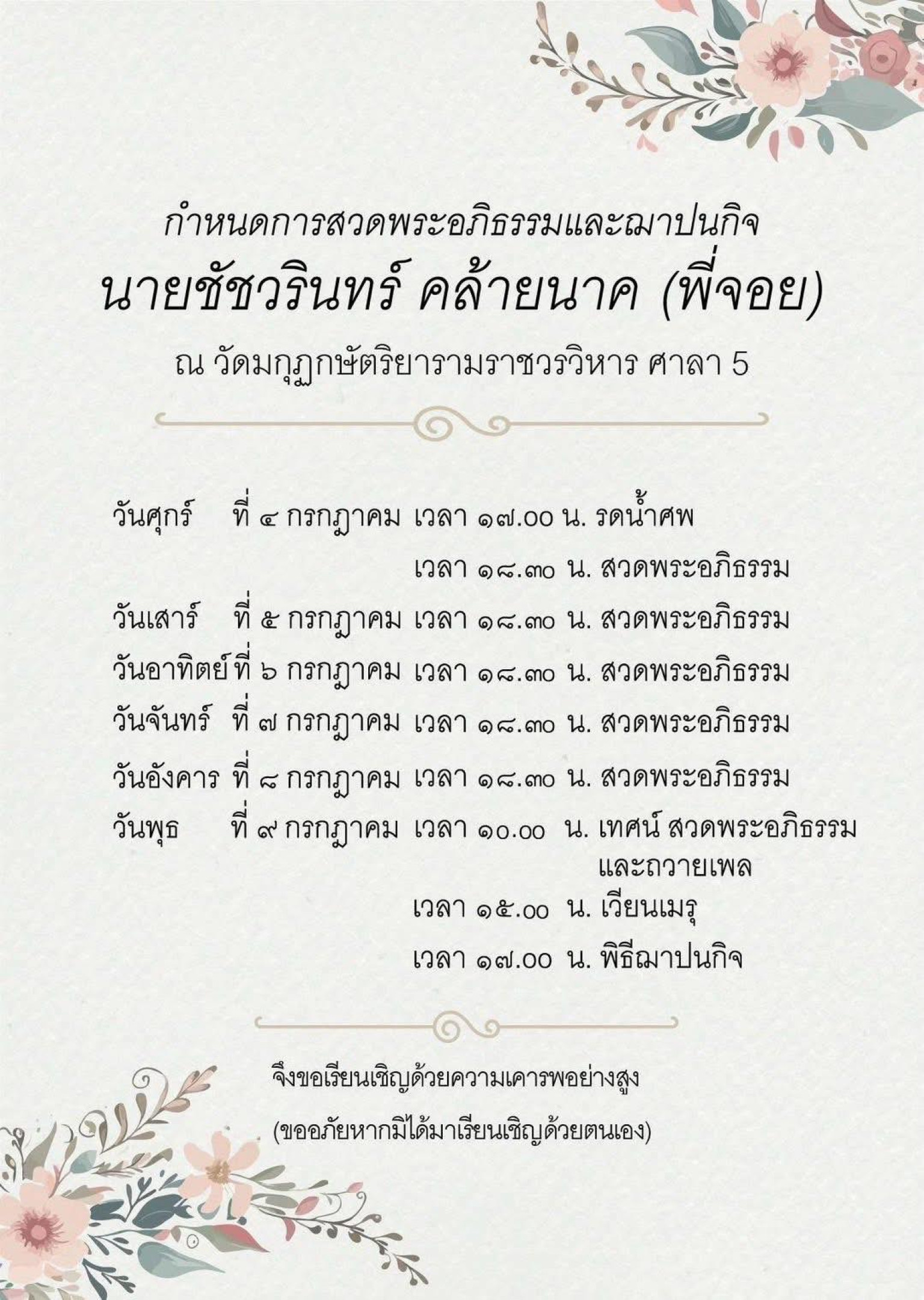 #พิธีฌาปนกิจ วันที่9 กรกฎาคม 2568