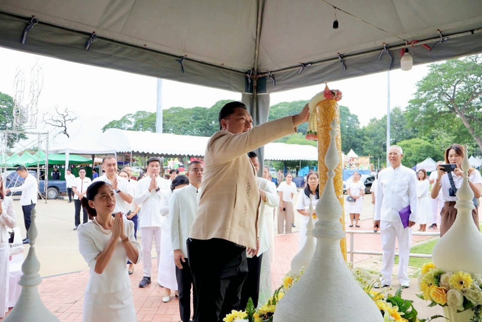 ผู้ว่าฯอ่างทอง นำพุทธศาสนิกชนร่วมพิธีทำบุญตักบาตรและหล่อเทียนพรรษา เนื่องในวันอาสาฬหบูชาและวันเข้าพรรษา ประจำปี 2568
