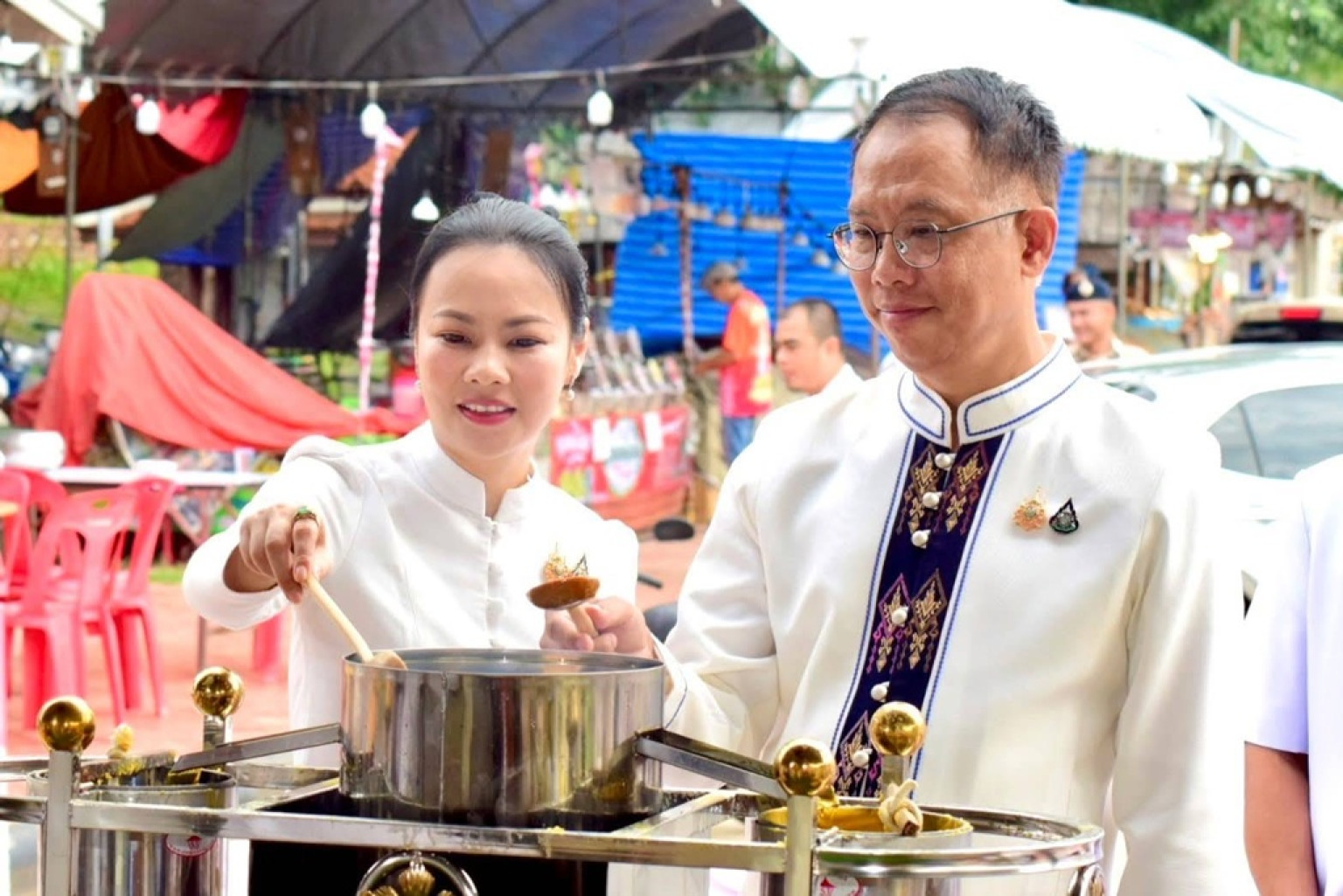 ผู้ว่าฯอ่างทอง นำพุทธศาสนิกชนร่วมพิธีทำบุญตักบาตรและหล่อเทียนพรรษา