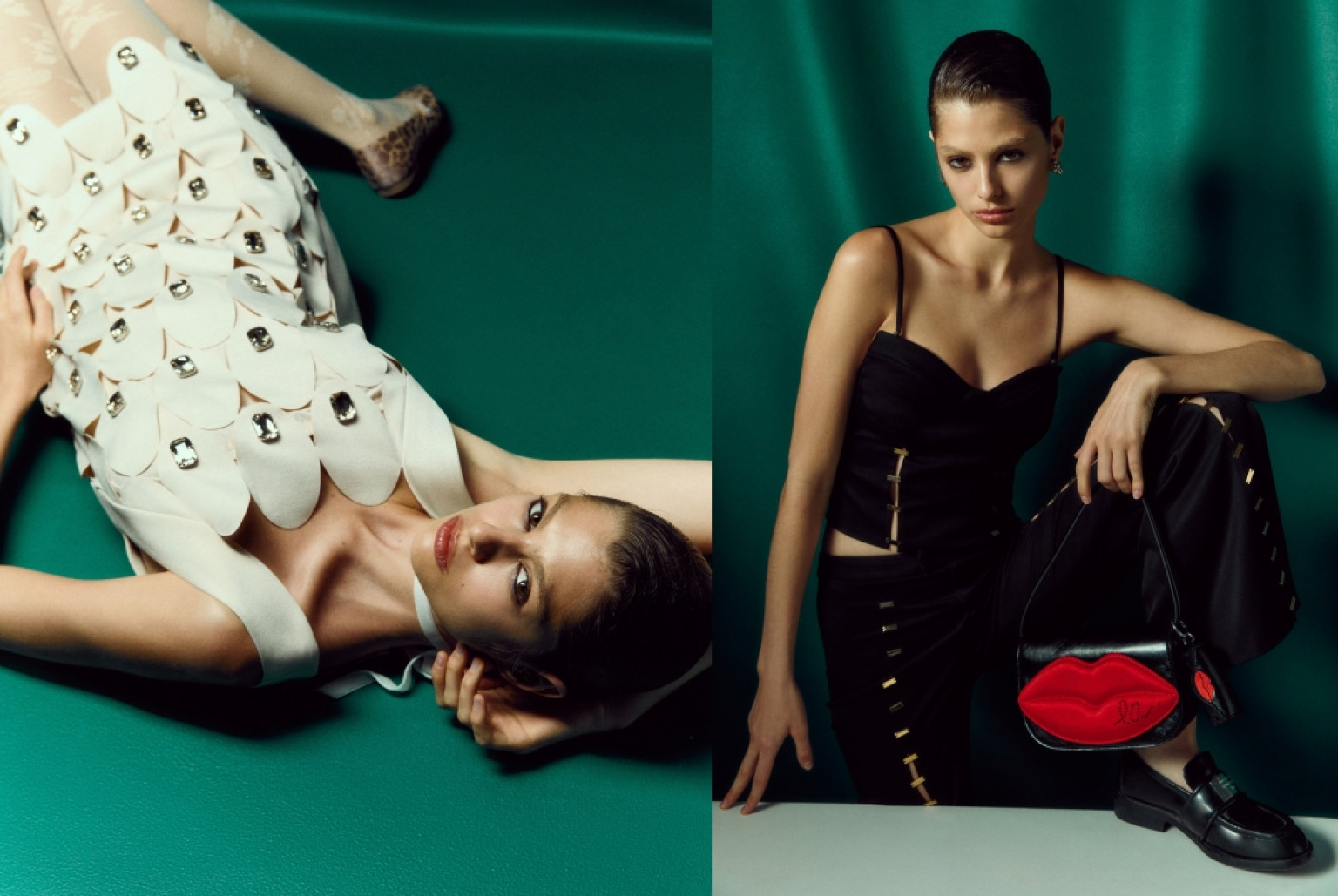 ทุกเฉดสีถูกขับเน้นผ่านซิลลูเอตคลาสสิกอันเฉียบคมและเทคนิคการตัดเย็บที่แสดงฝีมือระดับลักชัวรี่ ไม่ว่าจะเป็นการจับ เดรประย้า การแพตช์ต่อผ้าแบบมีชั้นเชิง การอัดพลีตอย่างปราณีต ลายพิมพ์ดอกไม้ที่แฝงความหวาน และการตกแต่งรัฟเฟิลที่ให้มิติพลิ้วไหวในทุกการเคลื่อนไหว อาทิ จัมพ์สูทคล้องคอสีเขียวโอลีฟ ด้วยคัตติ้งแบบ Halter-neck ที่เผยผิวแบบไม่โอ้อวด กับเส้นสายเรียบเฉียบ เดรสสายเดี่ยวพิมพ์ลายดอกไม้สีดำม่วง เสน่ห์ของลายดอกที่ไม่อ่อนหวานแต่เปี่ยมไปด้วยความมั่นใจ กลิ่นแฟมินีนที่แฝงไว้ด้วยอารมณ์ลึกลับ ใส่ได้ทั้งกลางวันและค่ำคืน เสื้อสายเดี่ยวดำแต่งโครง Corset กับ กระเป๋าลิปปาก ความแกลมที่ถูกจับให้อยู่ในโหมดพร้อมลุย พร้อมเติมลูกเล่น playful ผ่านกระเป๋ารูปปากแดง เซ็ทเสื้อและกระโปรงตกแต่งดอกไม้สามมิติ แดงที่ไม่ร้อนแรงแบบซุกซน แต่แดงแบบสง่างาม มีมิติ และสุดท้าย เดรสมินิสีขาวตกแต่งฮาร์ดแวร์โลหะ ซิลลูเอตแขนกุดทรงตรง แต่งผ้า scallop ซ้อนทับทั้งตัว ประดับโลหะทรงกลมเพิ่มเทกซ์เจอร์ขยับได้ สร้างจังหวะให้ลุคขาวเรียบดูมีชีวิต