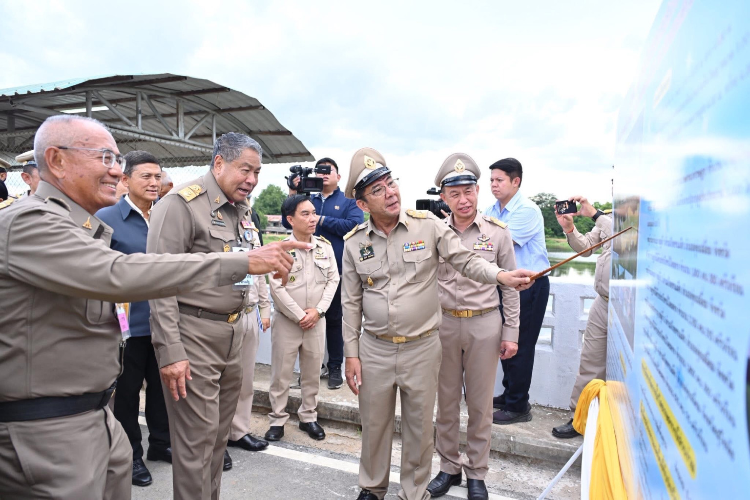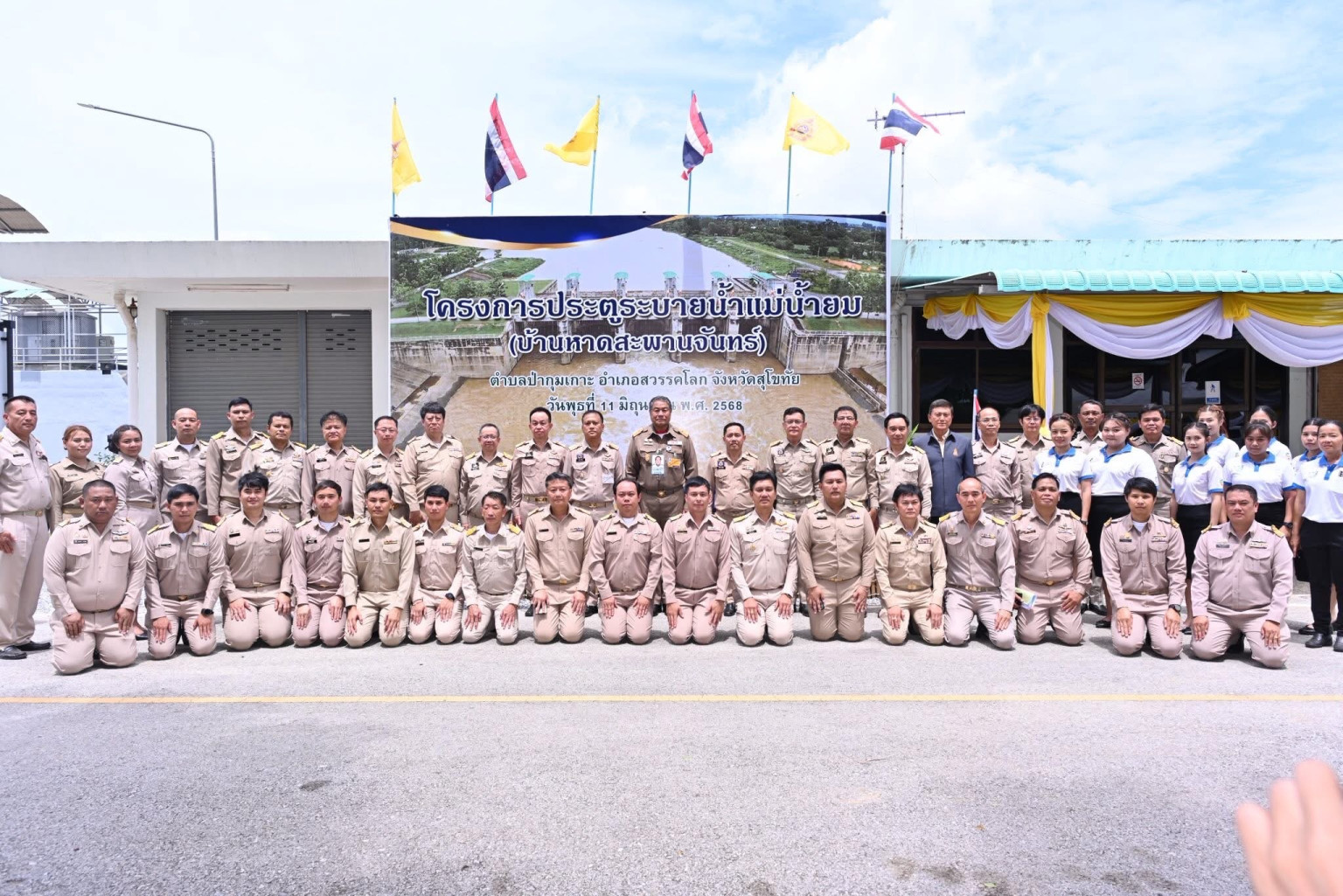 วันที่ 11 มิ.ย.68 นายพลากร สุวรรณรัฐ องคมนตรี ประธานอนุกรรมการติดตามและขับเคลื่อนโครงการอันเนื่องมาจากพระราชดำริพื้นที่ภาคเหนือ พร้อมคณะอนุกรรมการฯ และที่ปรึกษาฯ เดินทางไปติดตามและขับเคลื่อนโครงการอันเนื่องมาจากพระราชดำริ พื้นที่จังหวัดสุโขทัย และจังหวัดลำปาง โดยมี นายวัชระ หัศภาค ที่ปรึกษาด้านการพัฒนา สำนักงานกรรมการพิเศษเพื่อประสานงานโครงการอันเนื่องมาจากพระราชดำริ (สำนักงาน กปร.) นายวัชระ เสือดี ผู้ทรงคุณวุฒิด้านวิศวกรรมชลประทาน (ด้านบำรุงรักษา) นายทวีวัฒน์ สืบสุขมั่นสกุล ผู้อำนวยการสำนักงานชลประทานที่ 4 นายสัณฐิต พีรานนท์ ผู้อำนวยการกองประสานงานโครงการอันเนื่องมาจากพระราชดำริ นายไชยวัฒน์ กำทอง ผู้อำนวยการส่วนบริหารจัดการน้ำและบำรุงรักษา นายนครินทร์ วงศ์ฟูเฟื่องขจร ผู้อำนวยการส่วนแผนงาน นายทนงศักดิ์ อะโน ผู้อำนวยการส่วนวิศวกรรม นายอาทร คงแท่น ผู้อำนวยการโครงการก่อสร้าง นายชวนินทร์ สุภาษา ผู้อำนวยการโครงการชลประทานสุโขทัย นายสัมพันธ์ พิรกุลวานิช ผู้อำนวยการโครงการส่งน้ำและบำรุงรักษาสุโขทัย ข้าราชการ เจ้าหน้าที่ และผู้แทนจากหน่วยงานที่เกี่ยวข้อง ร่วมติดตามผลการดำเนินงานโครงการประตูระบายน้ำแม่น้ำยม (บ้านหาดสะพานจันทร์) ตำบลป่ากุมเกาะ อำเภอสวรรคโลก จังหวัดสุโขทัย