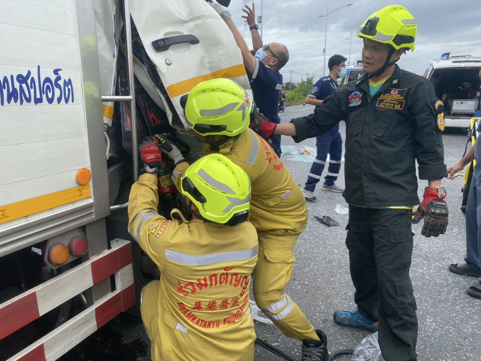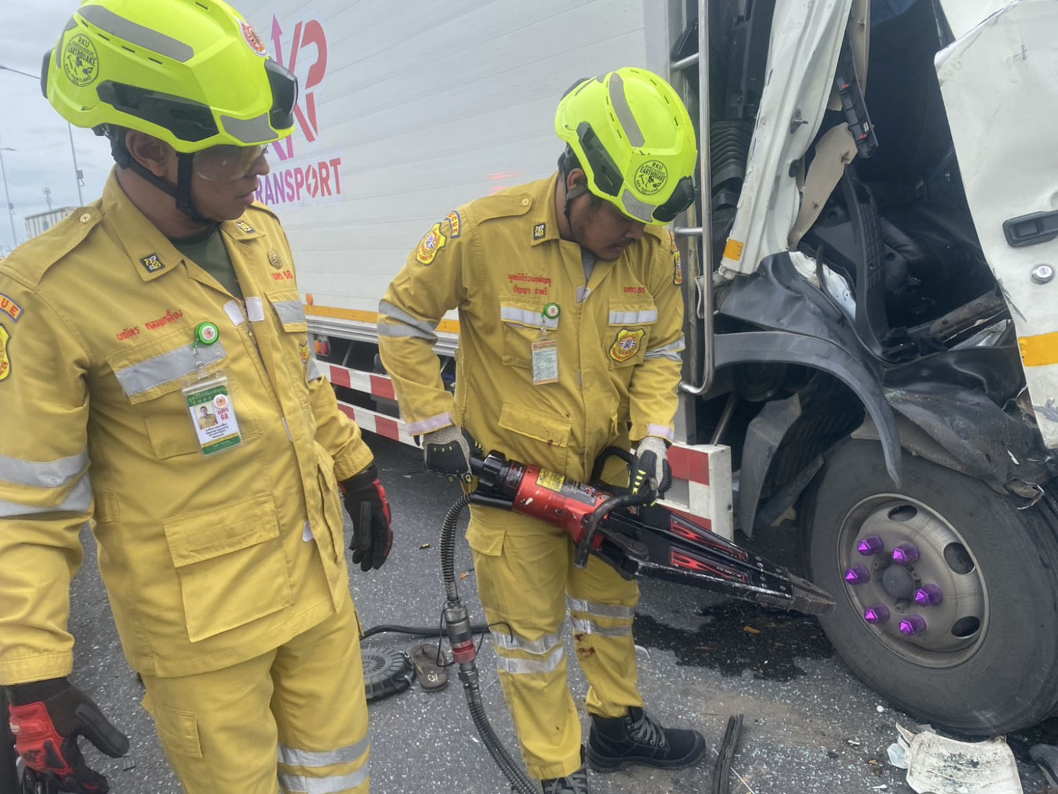 เมื่อเวลา 16.00 น. วันที่ 23 ก.ค. 68 ศูนย์วิทยุพระนคร ได้รับแจ้งเหตุว่ามีรถบรรทุกสองคันชนกัน บนถนนเลียบคลองส่งน้ำสุวรรณภูมิ ช่วงเชิงสะพานกลับรถ ข้ามคลองส่งน้ำ ใกล้เคียง โครงการบางกอกฟรีเทรดโซน 6 ตำบลบางปลา อำเภอบางพลี จังหวัดสมุทรปราการ ในที่เกิดเหตุมีคนขับติดคาซากรถอยู่ จึงประสานเจ้าหน้าที่รถ น.เขต นคร 68 นคร 75 นำอุปกรณ์ เครื่องตัดถ่าง และนำกำลังอาสาสมัครมูลนิธิร่วมกตัญญู ไปช่วยเหลือ