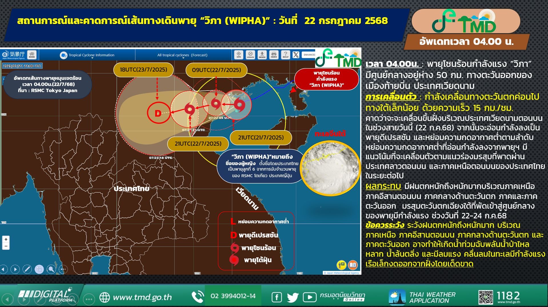 วันที่ 22 ก.ค.2568 ว่าที่ร้อยตรีธนุ วงศ์จินดา เลขาธิการคณะกรรมการการศึกษาขั้นพื้นฐาน (กพฐ.) เปิดเผยภายหลังการประชุมผู้บริหารระดับสูงของสำนักงานคณะกรรมการการศึกษาขั้นพื้นฐาน (สพฐ.) ว่า ตามที่กรมอุตุนิยมวิทยา และ กรมปฏิบัติการพิเศษ เตือนภัยเรื่องพายุวิภา ซึ่งแนวโน้มจะมีการเคลื่อนที่เข้าสู่จังหวัดน่านและเคลื่อนย้ายเข้าสู่จังหวัดภาคเหนือ