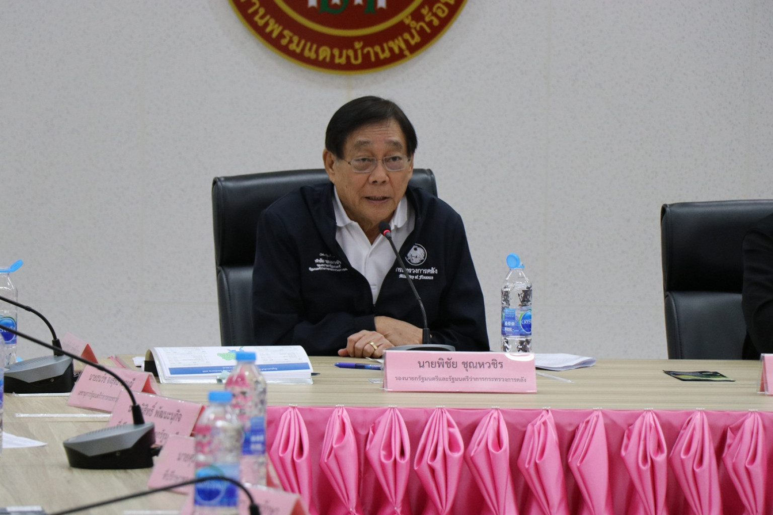 วันนี้ 28 มิถุนายน 2568 เวลา 10.00 น. ณ สำนักงานด่านพรมแดนบ้านพุน้ำร้อน อำเภอเมืองกาญจนบุรี จังหวัดกาญจนบุรี นายพิชัย ชุณหวชิร รองนายกรัฐมนตรีและรัฐมนตรีว่าการกระทรวงการคลัง พร้อมด้วย นายสุรพงษ์ ปิยะโชติ รัฐมนตรีช่วยว่าการกระทรวงคมนาคม และคณะ ลงพื้นที่ติดตามนโยบายการพัฒนาพื้นที่ เพื่อติดตามการดำเนินงานของด่านพรมแดนบ้านพุน้ำร้อน รวมไปถึงปัญหาการลักลอบนำเข้าสินค้าผิดกฎหมาย โดยมี นายอธิสรรค์ อินทร์ตรา ผู้ว่าราชการจังหวัดกาญจนบุรี ให้การต้อนรับพร้อมทั้งรายงานข้อมูลทั่วไปในพื้นที่ฯ พร้อมด้วย นายวุฒิพงษ์ สุภัควนิช รองผู้ว่าราชการจังหวัดกาญจนบุรี หัวหน้าส่วนราชการสังกัดกระทรวงมหาดไทย กระทรวงการคลัง กระทรวงคมนาคมนายอำเภอ หัวหน้าหน่วยงานรัฐวิสาหกิจสังกัดกระทรงมหาดไทย สมาชิกสภาองค์การบริหารส่วนจังหวัดกาญจนบุรี และเทศบาลเมืองทั้ง 3 แห่ง ร่วมให้การต้อนรับฯ