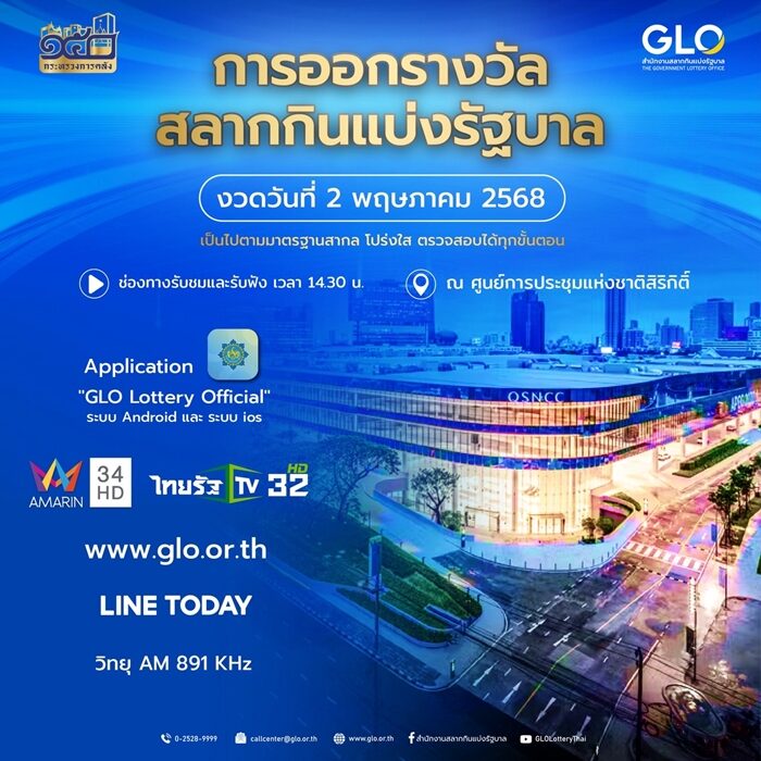 ช่องทางชมสดออกสลากกินแบ่งรัฐบาล หวยออกงวด 2 พฤษภาคม 2568