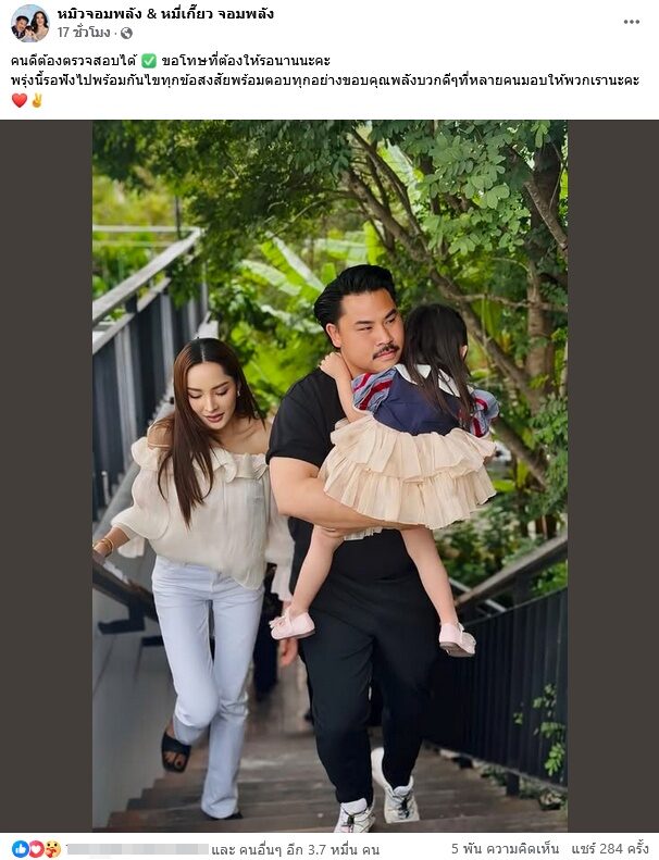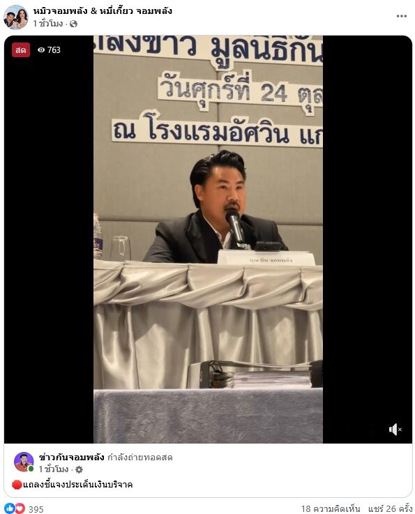 เช้านี้ (24 ต.ค.68) ก็ยังโพสต์ก่อนสามีแถลงข่าวด้วยว่า “10 โมงเจอกันนะคะทีมมูลนิธิกันจอมพลังช่วยสู้พร้อมค่ะ ” ก่อนจะแชร์โพสต์แถลงข่าว ท่ามกลางแฟนๆเข้ามาให้กำลังใจด้วย