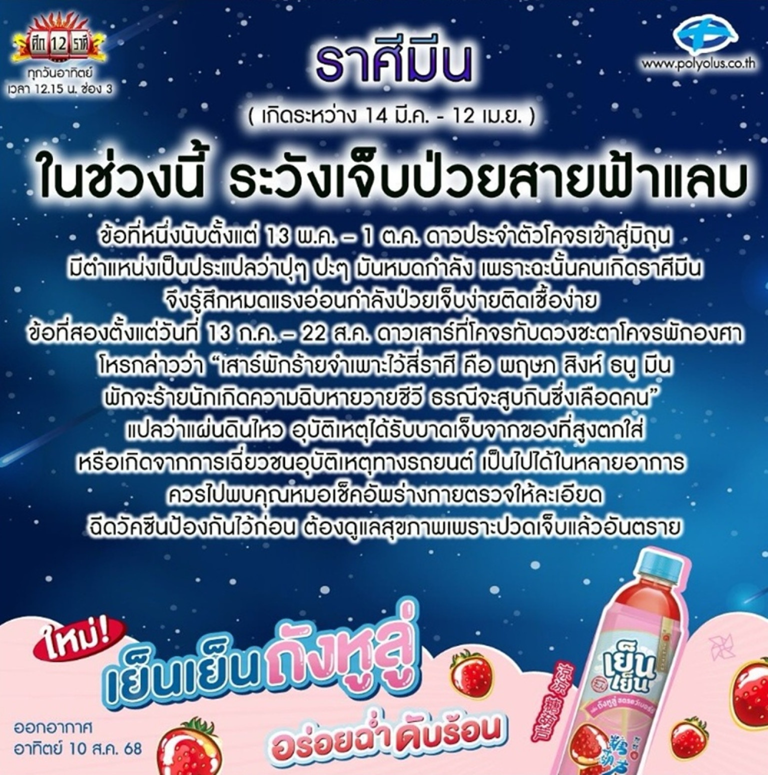 วันที่ 10 ส.ค.68 "ลักษณ์ ราชสีห์" หรือ "หมอลักษณ์ ฟันธง" นักพยากรณ์ชื่อดัง ทำนายดวงผ่านอินสตาแกรม @pol...
