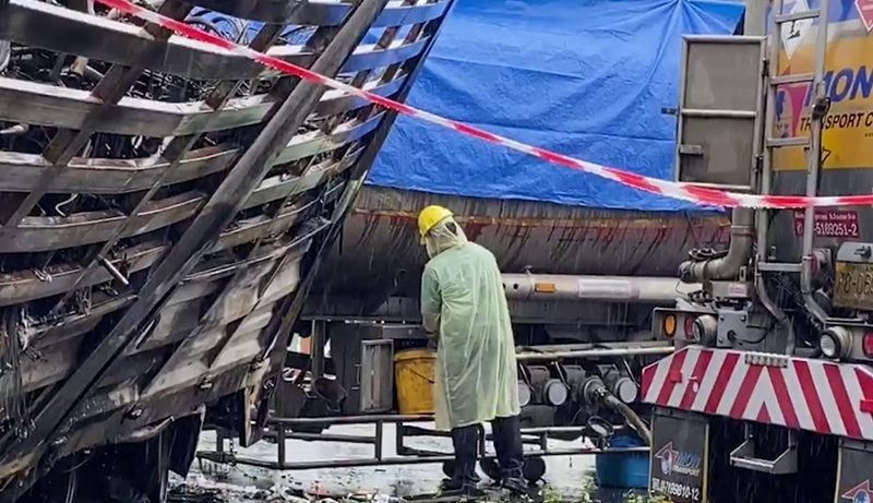 เปิดภาพความเสียหาย รถน้ำมัน บึ้มเผาตึก-รถเป็นทะเลเพลิง สูญกว่า10ล.