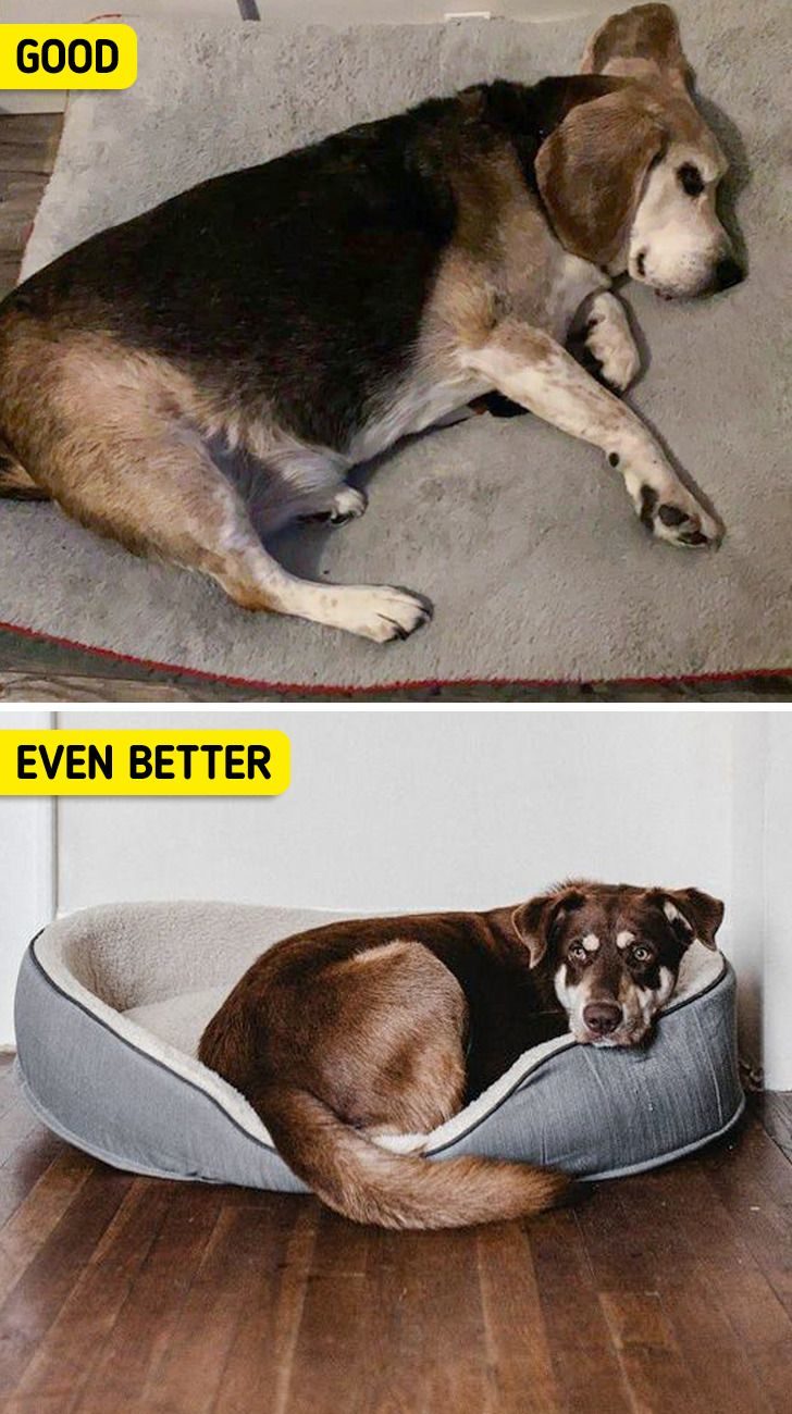 3. หาที่นอนสบายๆให้น้องหมา เมื่อน้องหมาอายุเพิ่มขึ้น กระดูกของสุนัขอาจเริ่มเจ็บเมื่อต้องนาบกับพื้น ซึ่งคุณอาจนำหมอนซักใบหรือ2 ใบไปรองที่นอนเก่าของน้องหมาก็ได้