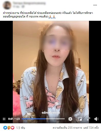 สาววอนขอความช่วยเหลือ ไลฟ์สดเล่าอาการ ตนเองป่วยโควิดมา4วันแล้ว หลังตรวจพบ แต่ยังไม่ได้รับการรักษา ตอนนี้มีอาการไข้ เจ็บคอ