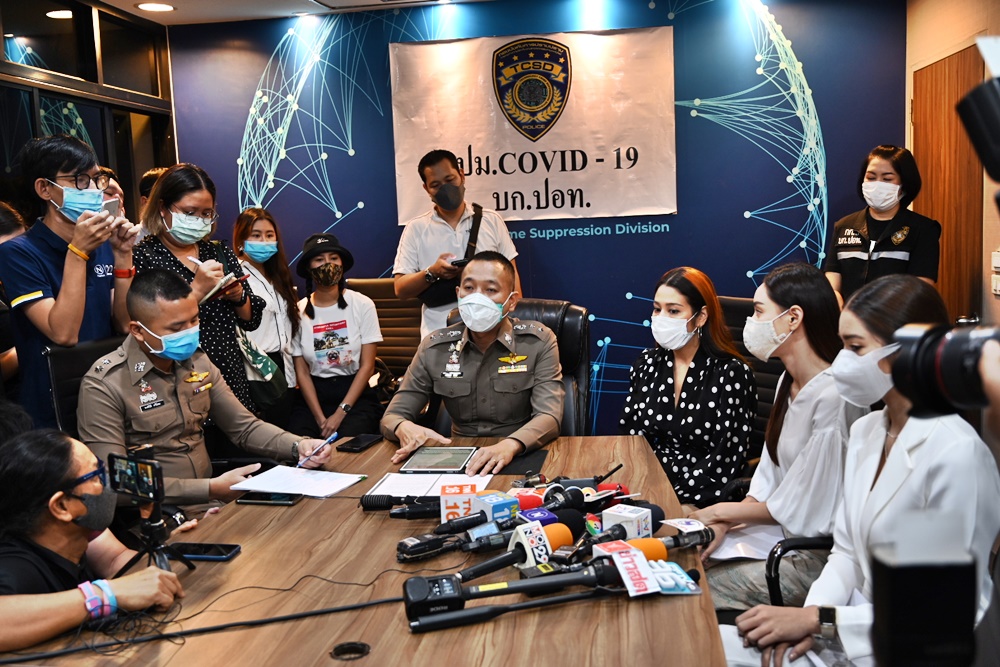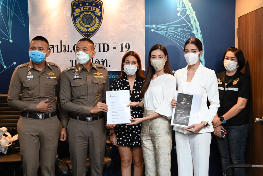 เมื่อเวลา 10.00 น. วันที่ 14 พ.ค. ที่กองบังคับการปราบปรามการกระทำความผิดเกี่ยวกับอาชญากรรมทางเทคโนโลยี (บก.ปอท.) เกรซ-พัชร์สิตา อธิอนันตศักดิ์ ดารานักแสดงช่อง 7 มิงค์-ฐรินดา กรรณสูต ดารานักแสดงช่อง 7 และ ตูน-พิมพ์ปวีณ์ โคกระบินทร์ ดารานักแสดงช่อง 3 นำเอกสารหลักฐานเดินทางเข้าพบ พ.ต.อ.ศิริวัฒน์ ดีพอ รอง ผบก.ปอท. และร.ต.ท.พงศ์ปิติ ตรีปิยะ รอง สว.กก.3 บก.ปอท.