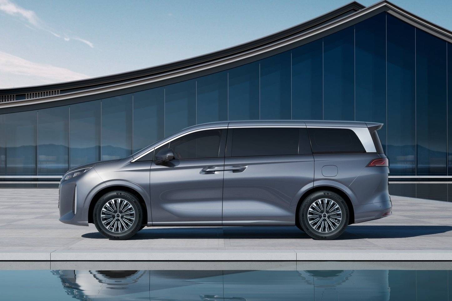 ด้านข้างดูคล้ายๆ DENZA D9 ทั้งชุดตกแต่งสีเงินโครเมียมที่ขอบกระจก คิ้วชายล่างประตู คิ้วกันชนหลัง ไฟท้ายดีไซน์แนวยาว LED และไฟเลี้ยววิ่ง Sequential หลังคา Dual Panoramic Sunroof ประตูสไลด์ด้านข้างเปิด-ปิดด้วยระบบไฟฟ้า พร้อมฝากระโปรงท้ายระบบไฟฟ้าและล้ออัลลอยลายสุดล้ำขนาด 18 นิ้ว พร้อมยาง 235/60R18
