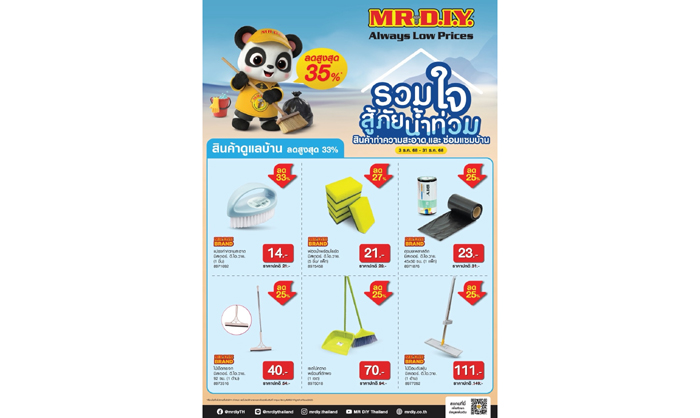 มิสเตอร์. ดี.ไอ.วาย. จัดโปร ‘รวมใจสู้ภัยน้ำท่วม’ ช่วยเหลือผู้ได้รับผลกระทบจากอุทกภัยภาคใต้ต่อเนื่อง ลดราคาสินค้าทำความสะอาดและสินค้าซ่อมแซมบ้านสูงสุด 35%