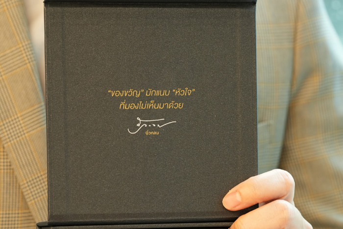 จึงไม่ได้มีเพียงมูลค่าในเชิงทรัพย์ แต่เป็นมากกว่าของขวัญแห่งความสุข ที่เต็มไปด้วยคุณค่าทางใจ พร้อมถ้อยคำจากคุณนิ้วกลม ที่เป็นสัญลักษณ์ของแรงบันดาลใจผ่านตัวหนังสือ ทำให้ของขวัญชิ้นพิเศษนี้มีความหมายยิ่งกว่าเดิม”