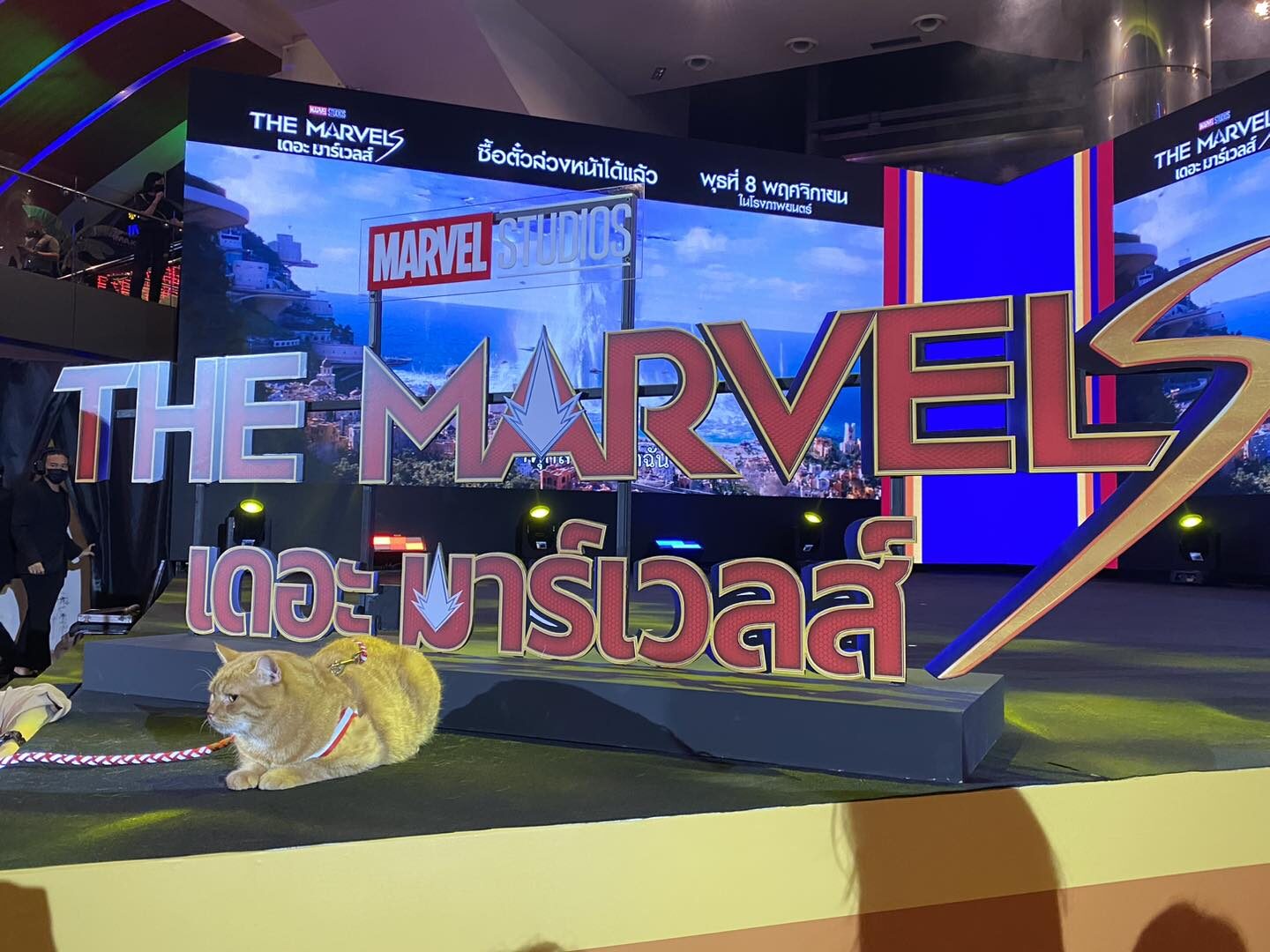 ในงานรอบปฐมทัศน์ก็ไม่พลาดที่จะจัดเต็ม เชิญเซเลป 4 ขา'เจ้าเควิน' จาก 'Indicatcafe bkk' มาร่วมงานด้วย ซึ่ง 'เจ้าเควิน' มารับบทเป็นตัวแทนเหมียวส้มของกัปตันมาเวล 'เจ้ากูส' นั่นเอง