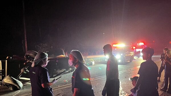 สลด 2 หนุ่มขับกระบะลากพ่วงบรรทุก เครื่องปั่นไฟ รถดับกลางอากาศขณะลงเขา กระโดดหนีตายแต่ไม่พ้น ถูกพ่วงทับลากร่างไกล 10 เมตร