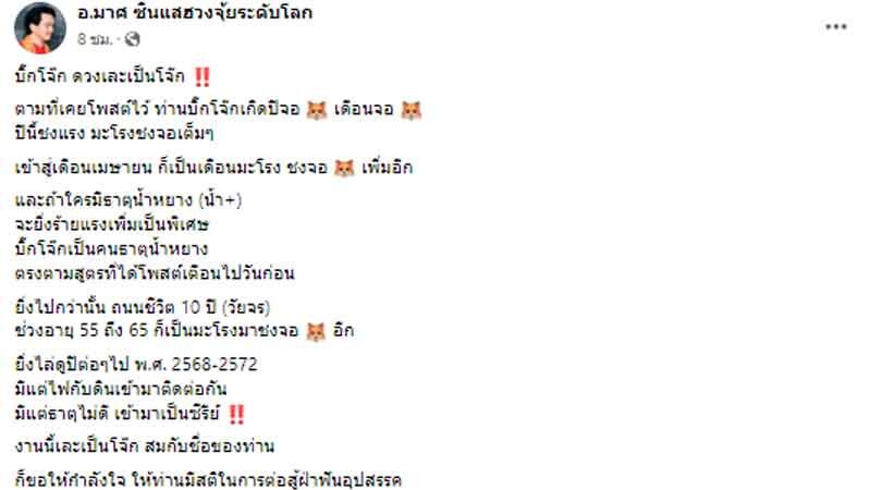 ข้อมูลและภาพประกอบ จาก Facebook : อ.มาศ ซินแสฮวงจุ้ยระดับโลก