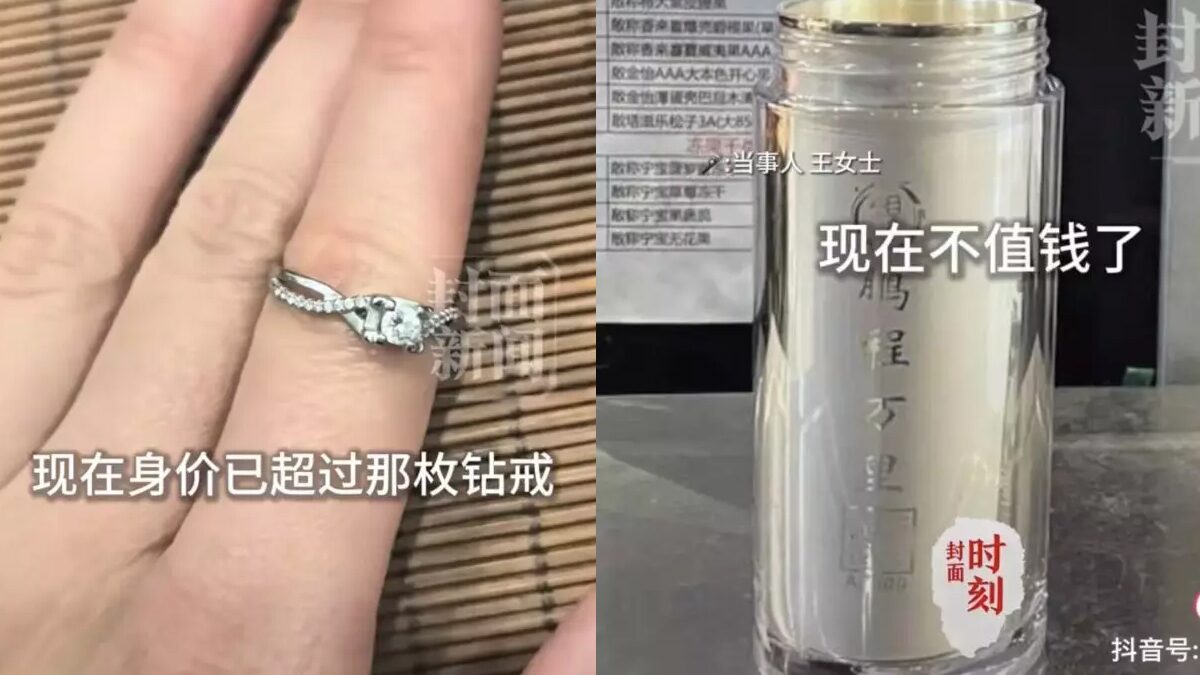 ขณะที่แหวนเพชรที่เธอเคยซื้อในราคาหลายพันหยวน กลับมีราคาขายคืนค่อนข้างต่ำ หลังสอบถามร้านรับซื้อเครื่องประดับหลายแห่ง เธอได้รับคำตอบว่าเนื่องจากเพชรมีกะรัตไม่สูงนัก อีกทั้งมีค่าแบรนด์ค่อนข้างสูง ปัจจุบันจึงขายคืนได้เพียงราว 700 หยวน (ราว 3,000 บาท) เท่านั้น