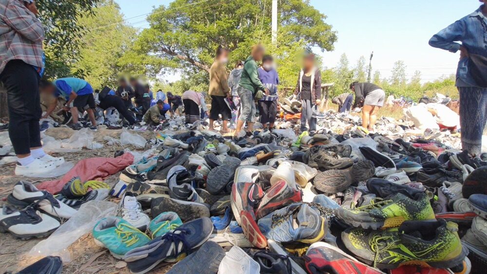 “ส่วนรองเท้าที่เลือกได้ก็ใส่ลงในถุงปุ๋ยจนเต็มถุง ก็จะเอาไปใส่ และไปฝากญาติพี่น้อง เพราะไม่เคยมีรองเท้าผ้าใบใส่มาหลายปีแล้ว สวมใส่แต่รองเท้าแตะ ถือว่าเป็นของขวัญปีใหม่ที่จะถึงนี้ ต้องขอขอบคุณพ่อค้าแม่ค้าใจดีนำมากองไว้ให้เลือก ทำให้มีรองเท้าผ้าใบสวมใส่เหมือนกับคนอื่น