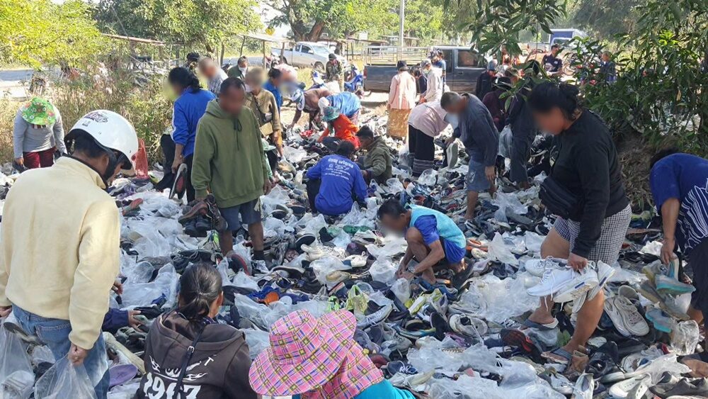 กรณีผู้ใช้เฟซบุ๊กรายหนึ่ง โพสต์ภาพชาวบ้านแห่เลือกรองเท้าผ้าใบมือ 2 นับหมื่นคู่ ถูกนำมากองทิ้งไว้สวนสาธารณะทุ่งหนองนามน บ.หัวขัว ต.เมืองเพีย อ.กุดจับ จ.อุดรธานี เวลาประมาณ 08.00 น. วันที่ 19 ธ.ค.67 พร้อมกับระบุข้อความว่า “ไผบ่มีเกิบ มาเอาเด้อครับ555 สงสัยเจ้าของใส่แล้วเลยเบื่อ” พิกัดทุ่งนามนบ้านหัวขัว