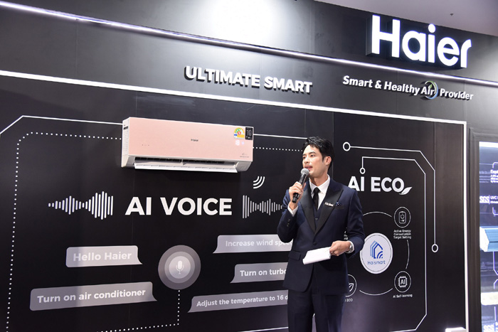สินค้าไฮไลต์เครื่องปรับอากาศภายในบ้าน ประกอบด้วย เครื่องปรับอากาศ Haier UV Cool Voice Series พบกับครั้งแรกของเทคโนโลยี AI Voice การสั่งการด้วยเสียงอัจฉริยะ ช่วยควบคุมเครื่องปรับอากาศได้อย่างง่ายดาย เช่น การจัดการอุณหภูมิ และ สามารถปรับโหมดการทำงานให้ตรงกับความต้องการของผู้ใช้งานได้อย่างแม่นยำ มาพร้อมกับการสั่งงานด้วยเสียงภาษาไทยและอังกฤษ พร้อมดีไซน์พาสเทล 3 สี ได้แก่ ขาว ชมพู ฟ้า ซึ่งเป็นการเพิ่มทางเลือกให้กับผู้บริโภคและตอบโจทย์ความต้องการที่หลากหลายได้อย่างครบครัน