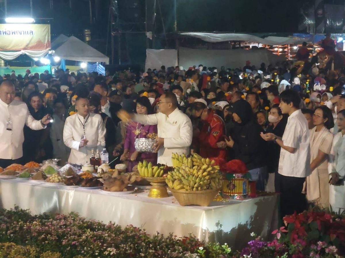 ที่บริเวณรอบวงเวียนอนุสาวรีย์เจ้าพ่อพญาแล ที่มีการทำพิธีบวงสรวงตั้งแต่เวลา 04.30 น.คลื่นมหาชนชาว จ.ชัยภูมิ มาจากทั่วสารทิศทุกหมู่เหล่าจากทั่วทั้งจังหวัดใน16 อำเภอ นับลายหมื่นคนต่างพร้อมใจกันเดินทางมาร่วมพิธี รวมทั้งนักท่องเที่ยวทั้งชาวไทย ชาวต่างชาติ ที่ศรัทธาในดวงวิญญาณอันศักดิ์สิทธิ์เจ้าพ่อพญาแล แห่นำพานบายศรีมาร่วมพิธีบวงสรวงดวงวิญญาณอันศักดิ์สิทธิ์ของพระยาภักดีชุมพล (แล) หรือ “เจ้าพ่อพญาแล” เจ้าเมืองชัยภูมิคนแรกของจังหวัดชัยภูมิ