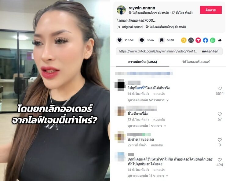 จากกรณีโซเชียลตกอกตกใจหลังจากมีเจ้าของแบรนด์หนึ่ง โพสต์คลิปไปไลฟ์กับ เจนนี่ ได้หมดถ้าสดชื่น แล้วสินค้าถูกยกเลิกทุกนาที 7,000 ออเดอร์ ทำให้เกิดเสียงวิพากษ์วิจารณ์กันต่างๆ นานานั้น